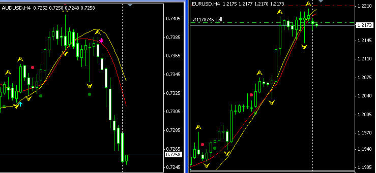 是的,EUR破坏趋势线。而AUD距离趋势线还比较远,说明跌速过快,乖离大,只是回调,翻转的可能性不大。