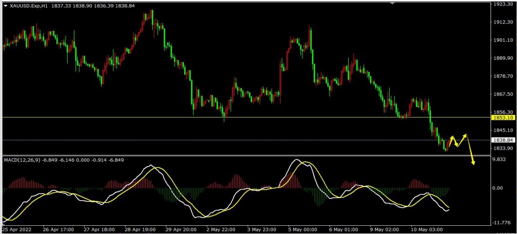 从国际黄金1小时走势来看,黄金自身也走出了下破,1853将是接下来的明显压力位,目前